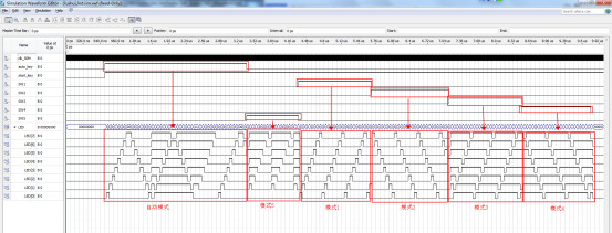// 8位流水灯设计要求: // 1.设计能带8个LED发光管发光,并按照要求轮流发光,产生流水灯的流动效果。 // 2.应具有5种以上不同风格的流动闪亮效果。 // 3.有起动、停止控制键。 // 4.有流动闪亮效果选择设置键,流动风格分手动选择和自动循环两种模式 module liushui_led( input clk_50M,//50M信号 input start_key,//起动、停止控制键 input SW1,//手动效果选择设置键1 input SW2,//手动效果选择设置键2 input SW3,//手动效果选择设置键3 input SW4,//手动效果选择设置键4 input SW5,//手动效果选择设置键5 input auto_key,//手动选择和自动循环两种模式设置键,为1为自动,为0为手动 output [7:0] LED//LED ); wire clk_4Hz;//4Hz //分频模块,50MHz分频到4Hz fenping i_fenping( . clk_50M(clk_50M), . start_key(start_key),//起动、停止控制键 . clk_4Hz(clk_4Hz) );