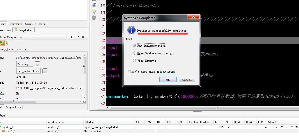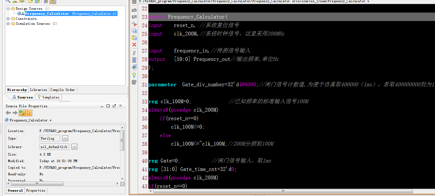 名称:基于FPGA的简易等精度频率计设计Verilog代码VIVADO仿真