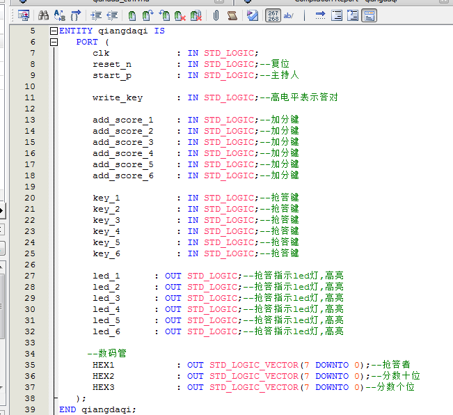 Verilog/VHDL资源下载 » 6路抢答器带倒计时计分功能设计VHDL代码Quartus仿真