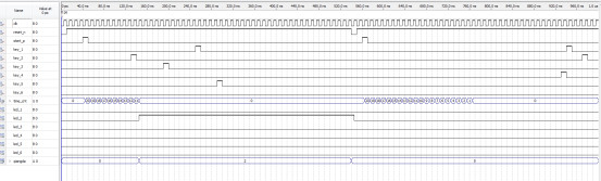 上图中,复位后,按下主持人控制按键,此时开始抢答,同时开始计时,图中,2号先抢答,led2变为高电平。抢答号为2。后半段仿真了超时抢答的情况,20秒内没有抢答,后续再抢答也无效。