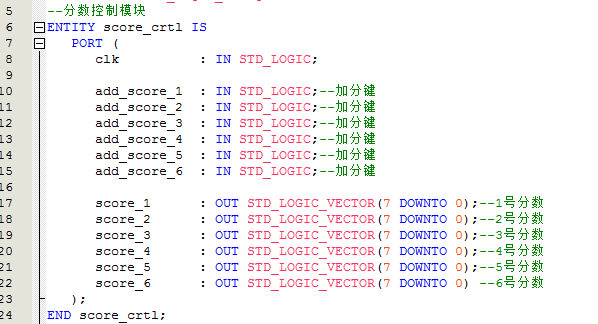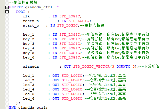 名称:6路抢答器带倒计时计分功能设计VHDL代码Quartus仿真