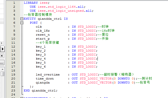 名称:基于FPGA的6路抢答器设计VHDL代码Quartus DE2-115开发板