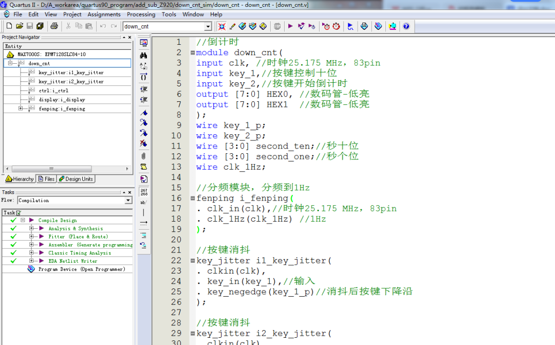 Verilog/VHDL资源下载 » 可调倒计时器设计Verilog代码Quartus仿真