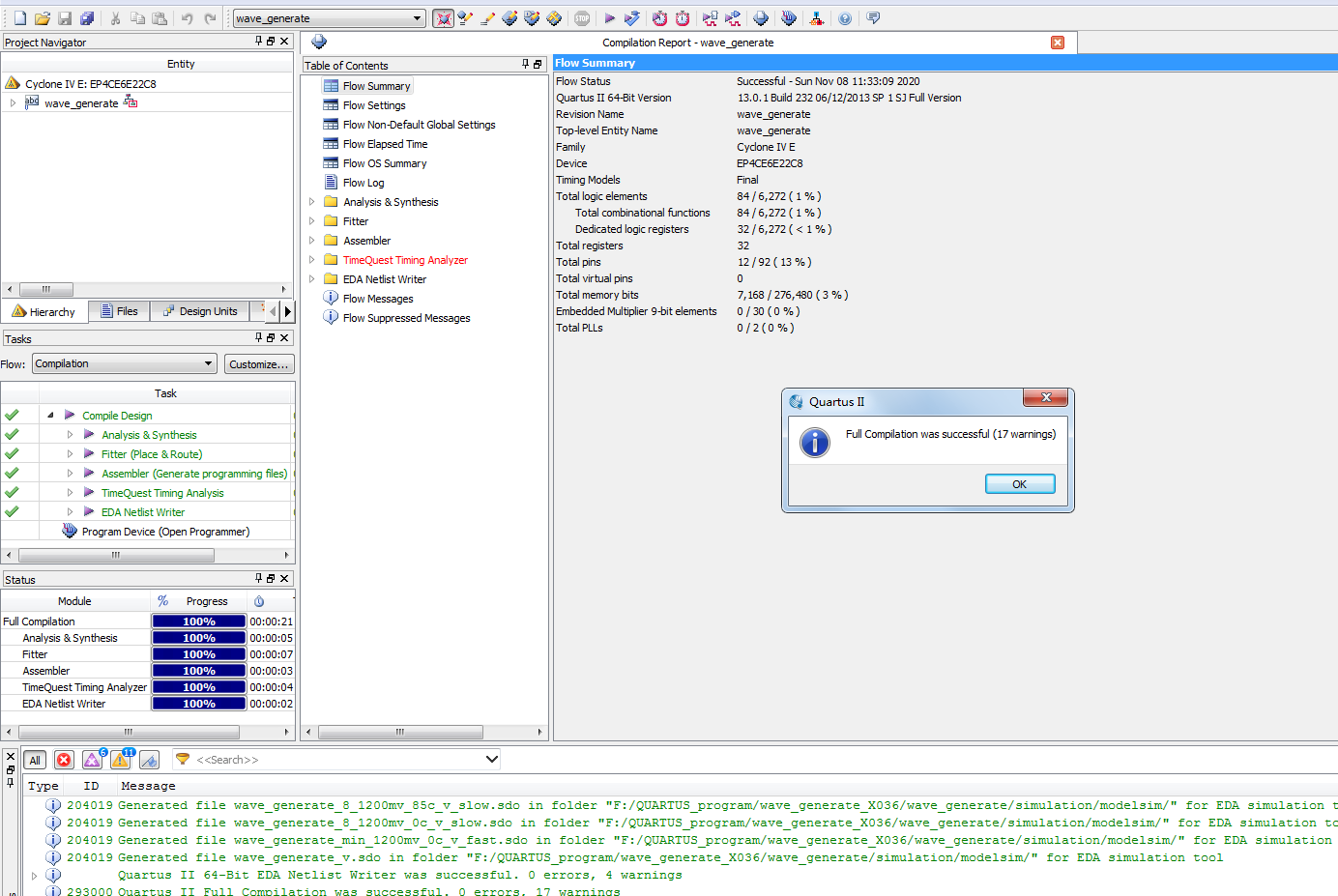 (6)采用波形仿真、 Testbench两种方式进行功能仿真、时序仿真
