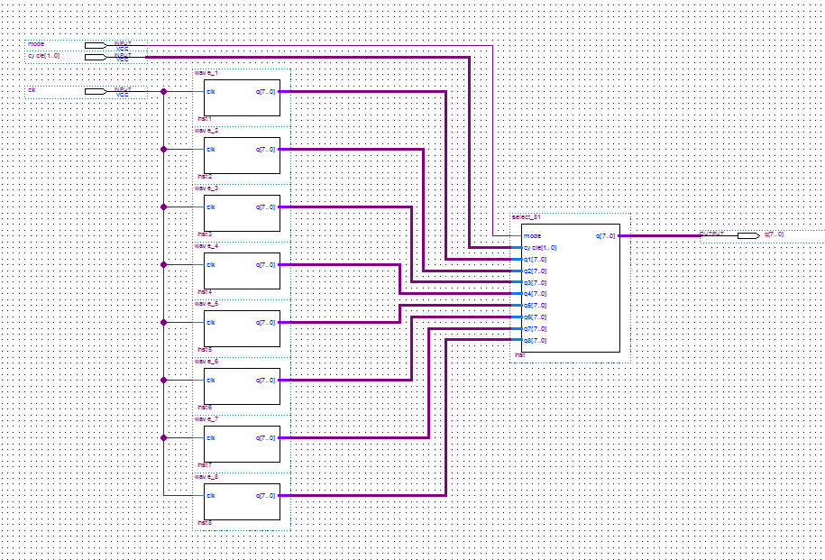 //信号发生器 module wave_generate( input clk,//时钟 input mode,//0表示正弦波,1表示方波 input [1:0] cycle,//周期控制,64--00;96--01;128--10;160--11 output [7:0] q//输出信号 ); wire [7:0] q1;//正弦64 wire [7:0] q2;//正弦96 wire [7:0] q3;//正弦128 wire [7:0] q4;//正弦160 wire [7:0] q5;//方波64 wire [7:0] q6;//方波96 wire [7:0] q7;//方波128 wire [7:0] q8;//方波160 //wave 1 wave_1 i_wave_1( . clk(clk), . q(q1)//输出信号 );
