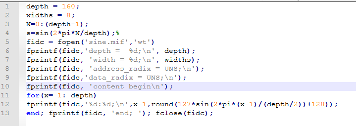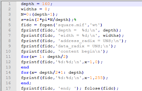 (5)使用 Matalab生成波形数据(mif格式),并保存在ROM中