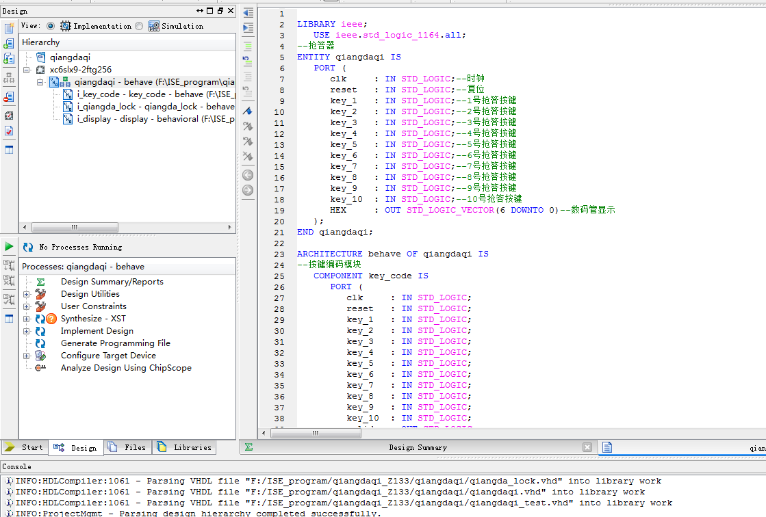 Verilog/VHDL资源下载 » 基于FPGA的选手抢答器及结果显示驱动设计VHDL代码ISE仿真