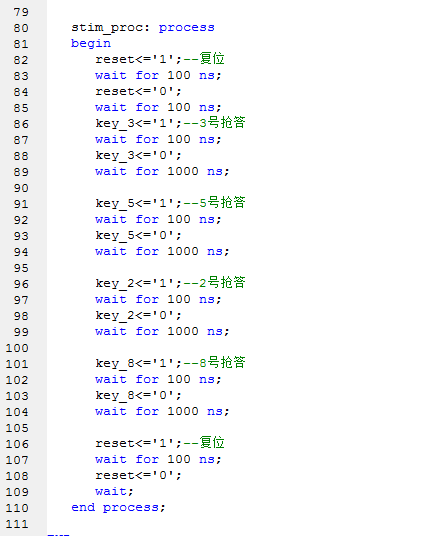4.需要分别完成以下3个模块的VHDL设计并分别进行仿真测试选手按键编码模块,抢答及锁定模块,结果显示驱动模块;